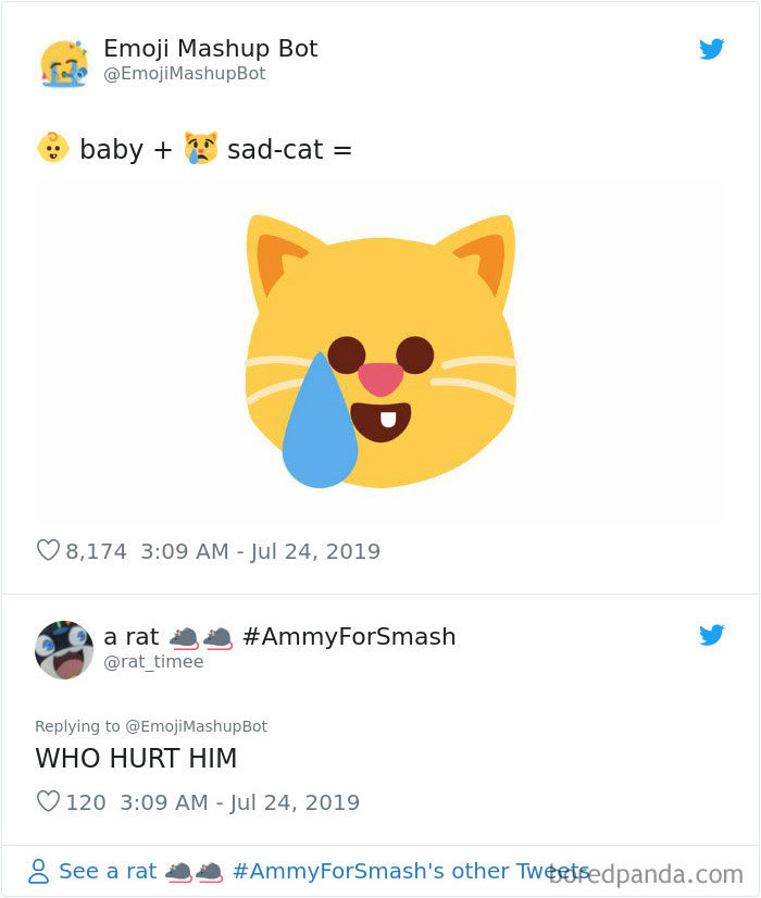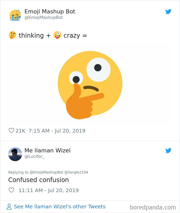 2019年09月11日大家平時聊天愛用表情符號嗎?雖然表情符號能表達很多情緒,但有的時候還是覺得不太夠用,沒辦法準確表達內心的感覺。法國18歲男孩Louan Benmah超天才,他開發了一款名為「The Emoji Mashup Bot」的APP,能將好幾種表情符號混合起來,變成新的。不管你的情緒多複雜,都能用這些表情符號來表達~
