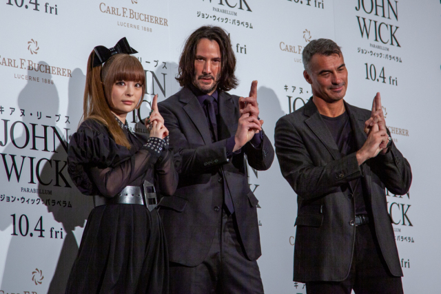 2019年09月12日基努李維(Keanu Reeves)最新電影《捍衛任務3》終於在日本上映,他本人也特別飛到日本為電影宣傳。日本首映會上除了吸引一大票的影迷,居然連人氣女歌手卡莉怪妞也現身支持,而且還陪基努李維一起學習扮忍者!