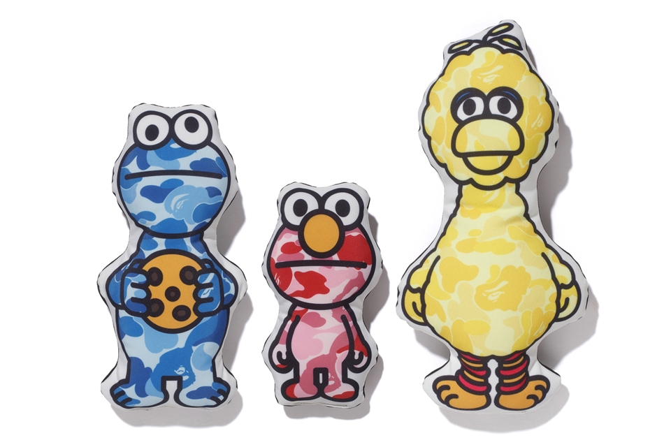 ELMO潮起來囉!芝麻街 x BAPE猿人頭 無表情迷彩抱枕必收