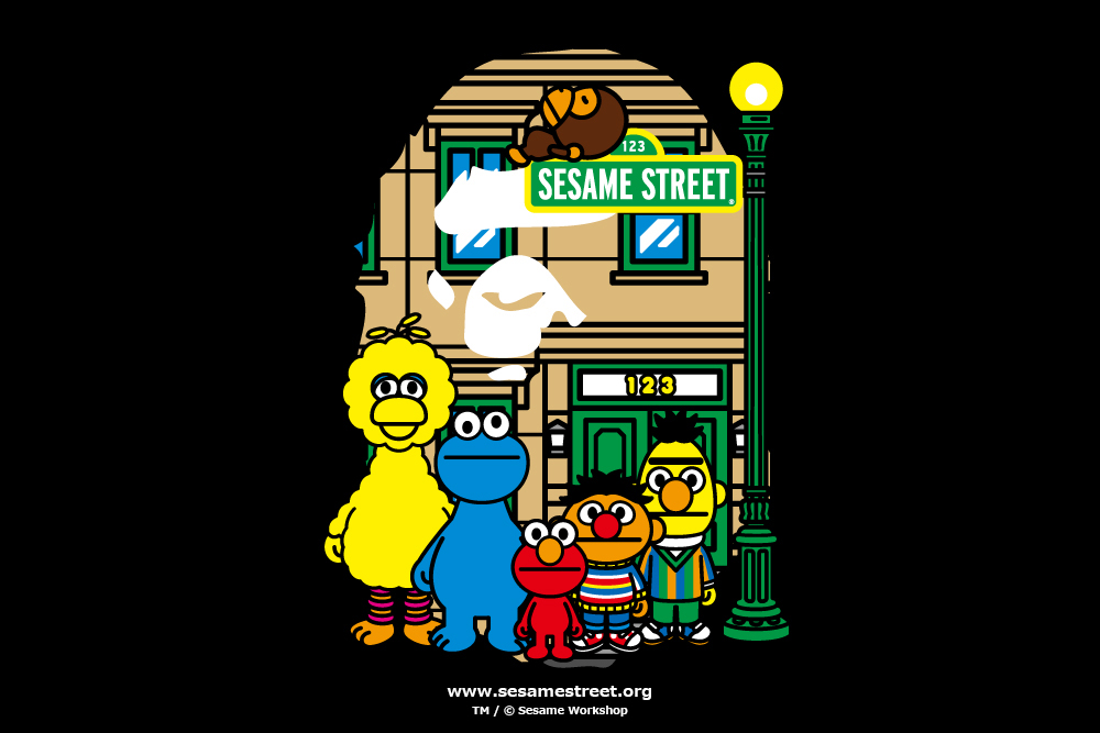 ▼而BAPE旗下的可愛小猴子「Baby MILO」也在這次的聯名中,跟芝麻街角色一同狂歡~
