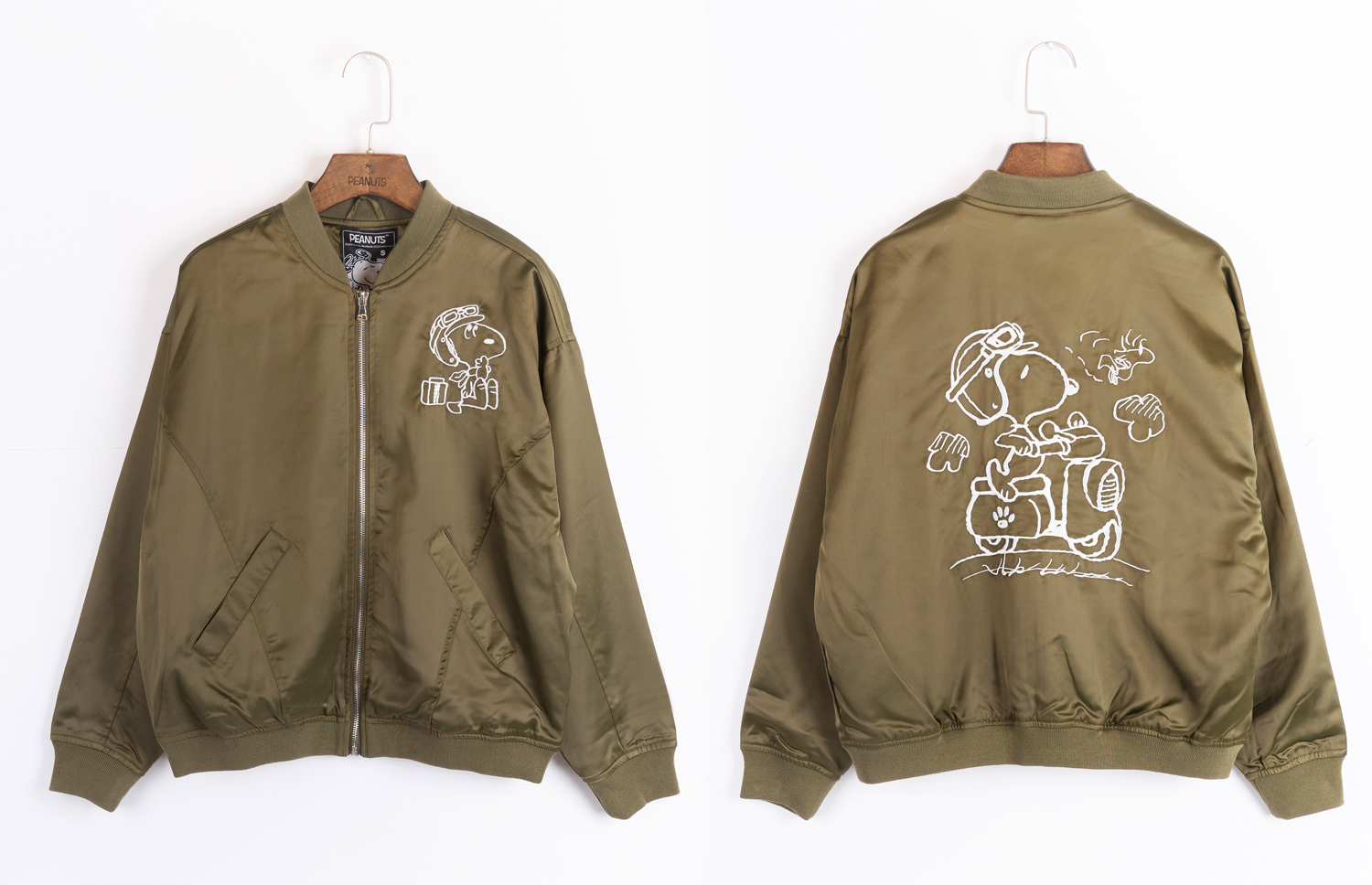 ▼緞面夾克:將卡通意象融入潮流單品,以簡單線條呈現戴著安全帽、騎著機車的史努比,加上緞面亮色提升時髦感,既實穿又帥氣。