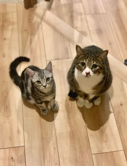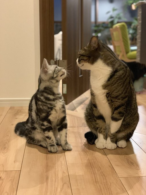 ▼大貓跟小貓互相影響,主人被牠們萌到,連忙拍下照片po到twitter上,跟大家一起分享。