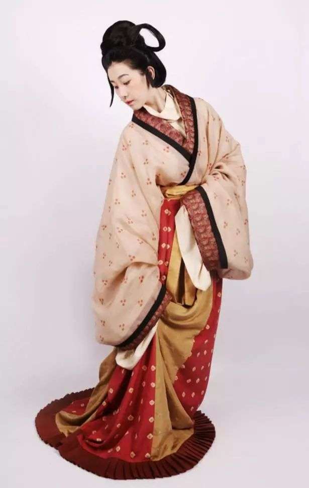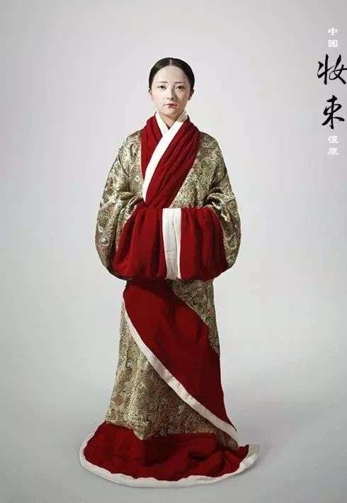 ▼這件西漢長壽綉曲裾袍,是根據長沙馬王堆西漢辛追墓出土的長壽綉曲裾袍復原的,色彩、紋樣、尺寸都無比貼近。