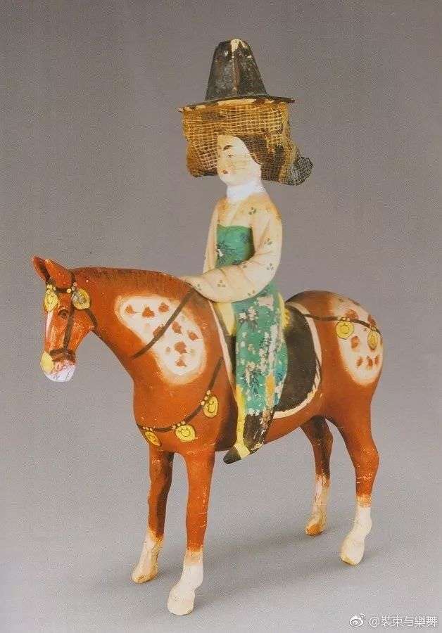 ▼這個唐代帷帽仕女參照了吐魯番阿斯塔納187號墓葬出土的唐代彩繪騎馬戴帷帽仕女俑。
