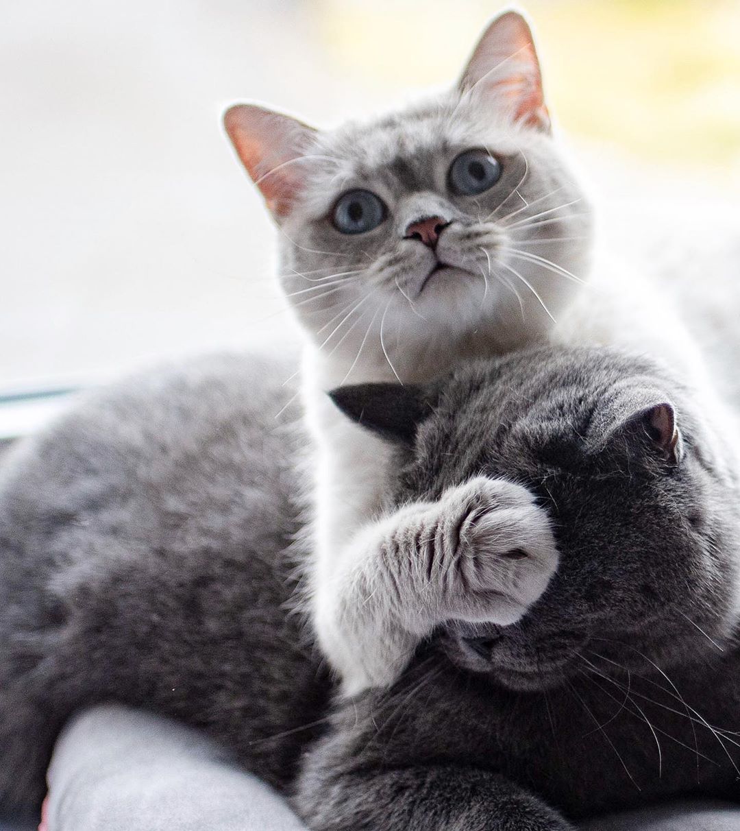▼鏟屎官@amy_simba經常分享家中「艾咪」、「辛巴」、「米洛」的日常,這三隻貓咪不只感情好,還很喜歡這樣把頭放在別人頭上!