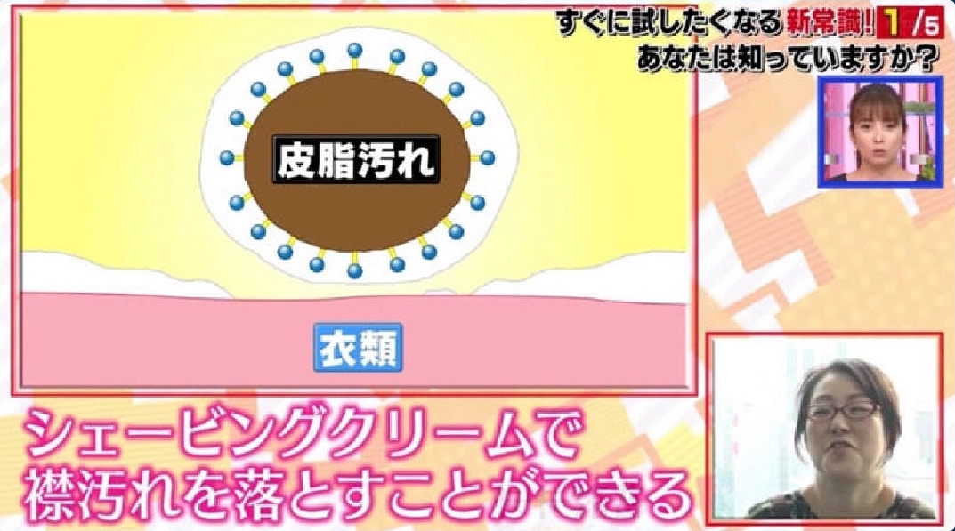▼而刮鬍泡裡含有很多「界面活劑」,可以輕鬆的帶走皮脂污漬,將衣服上的髒污洗得乾乾淨淨的!