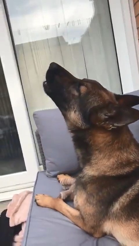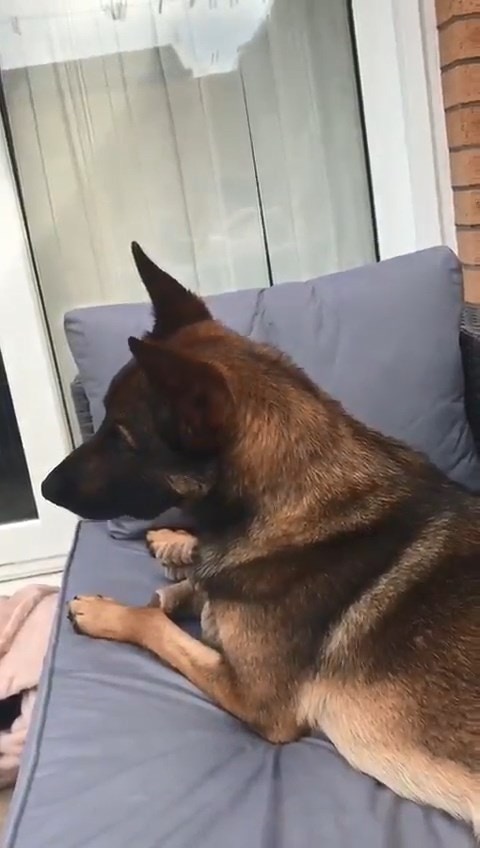 休假中的警犬「突然聽到警車響」 下一秒抬頭叫幾聲:你們加油啊!