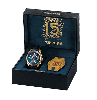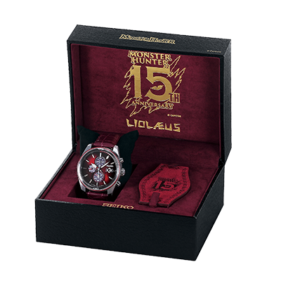 ▼CAPCOM與SEIKO聯名推出的15週年紀念手錶一共有3種款式,都是以遊戲中經典的魔物為主題。藍綠色的手錶是剛剛回歸《魔物獵人 世界》的「雷狼龍」主題;紅色手錶的主題是魔物獵人系列的金字招牌「雄火龍」;黑色的則是《魔物獵人 世界》的招牌魔物「滅盡龍」。