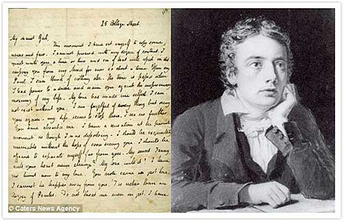 ▼3. 英國浪漫派詩人John Keats在1819年寫給鄰居Fanny Brawne的情書: