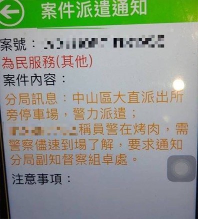 ▼有網友在臉書社團中曝光了一張案件派遣通知單,可以看到投訴民眾除了要求警察盡速到場了解以外,還要求通知分局督察組。