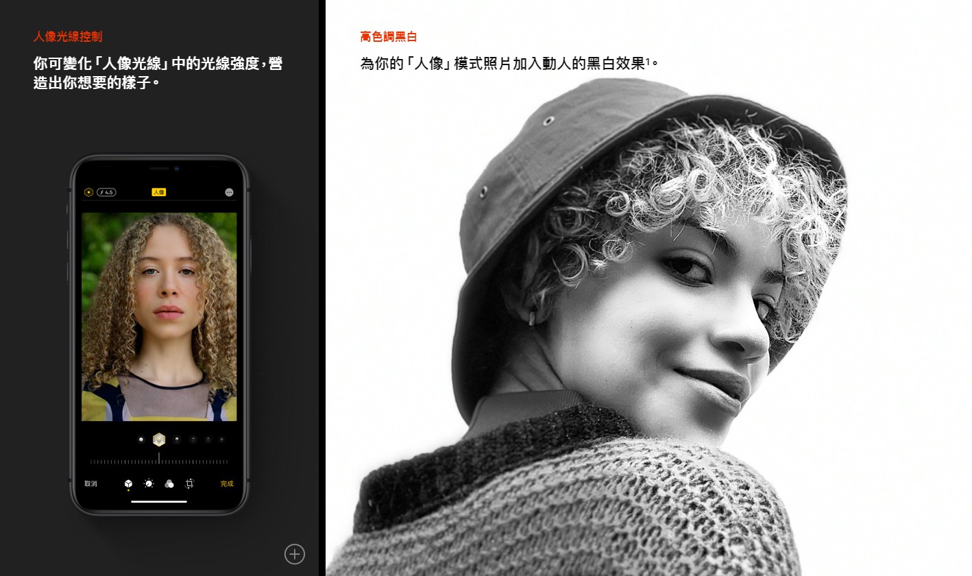 iOS 13 在之前的基礎上新增了「單調高色光」模式,可以讓照片擁有更高的亮度和對比度,還可以變化「人像光線」中的光線強度,營造出不同感覺。