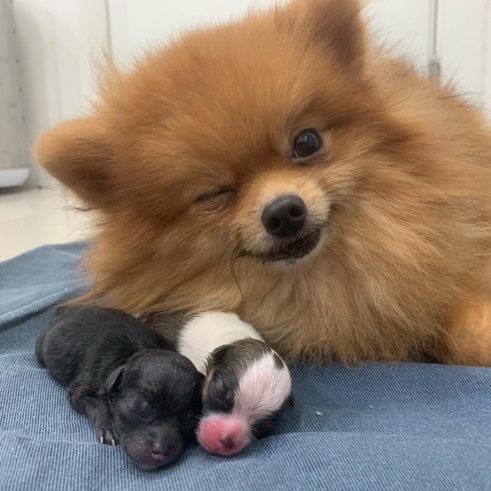 寶寶順利來到世界上的那一刻,媽媽們會感覺幸福又驕傲。不僅人類如此,動物也是一樣。巴西一隻叫Luz的博美犬升格為媽媽,看著剛剛出生的2隻小狗,牠超級開心,與孩子們合照時還露出了甜笑。