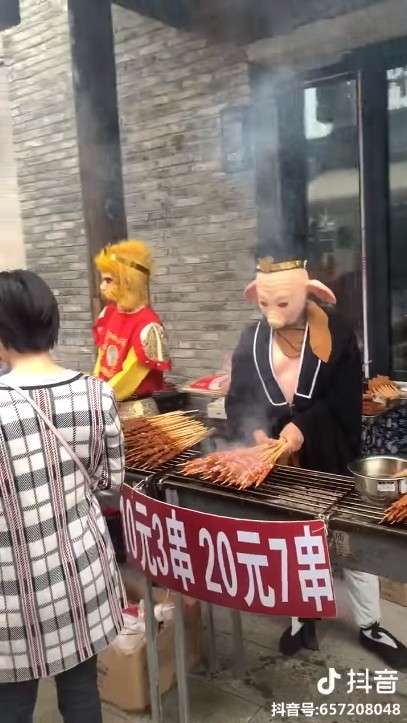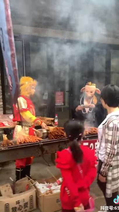 孫悟空在街頭烤「唐僧肉」 豬八戒笑嘻嘻收錢:CP值超高