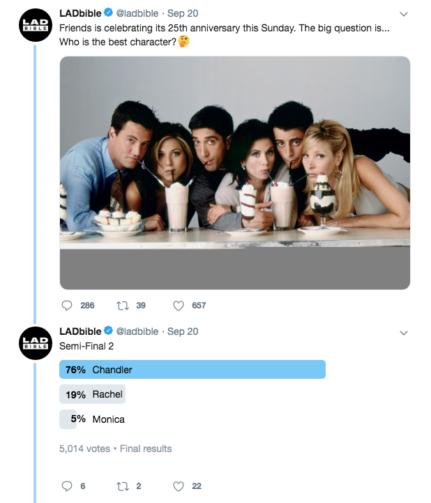 1994年開播的超級經典美劇《六人行(Friends)》已經25歲啦!外國網站也趁機在推特發起票選活動,讓網友們可以選出自己認為是最棒的角色!經過好幾輪的票選後,最後獲得最多人認同的最佳角色是錢德賓(Chandler Bing)!