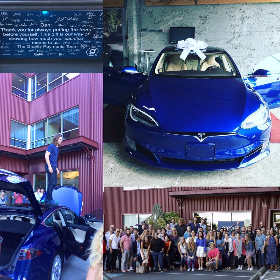 ▼2016年,普萊斯在臉書分享了一輛特斯拉(Tesla)汽車的照片,原來這是他的員工利用加薪所存下來的錢,合資購買來送個他的禮物!這些員工們還在一張海報上簽名,並表示「感謝你總是先想到我們。」