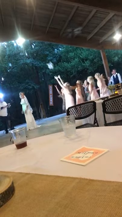 ▼海莉在其他女生的通知下,才知道原來自己的男友奈森看到她接到捧花,竟然嚇得逃走了!