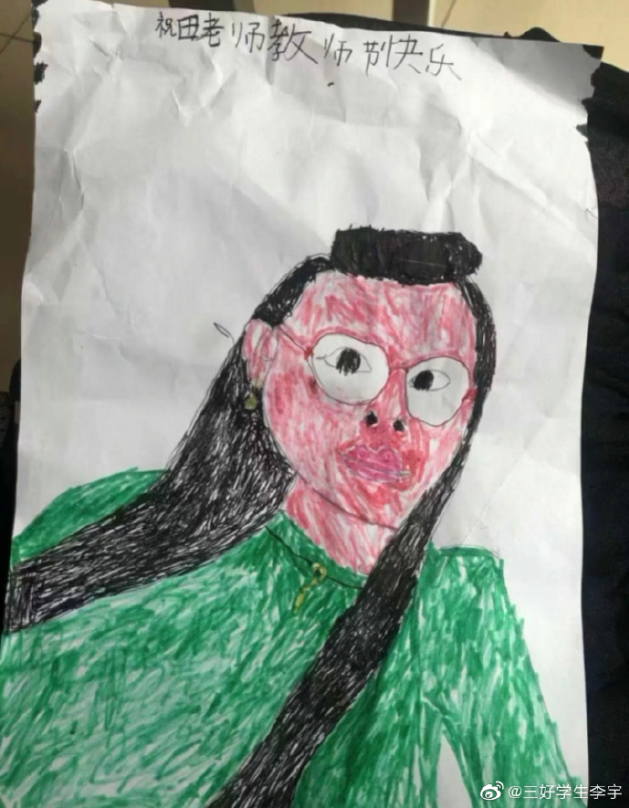 2019年09月27日許多學生為了感謝老師的指導,都會選擇在教師節時給老師送上一些小禮物。下面這個老師也一樣收到了來自學生的禮物,而且是一副親手畫的肖像畫…只是,老師看到自己長的樣子,當場就有一種說不出來的複雜感受。
