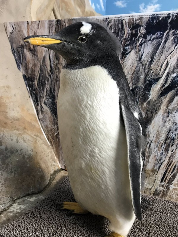 ▼這是一隻巴布亞企鵝,頭部有白色像頭巾一樣的花紋。