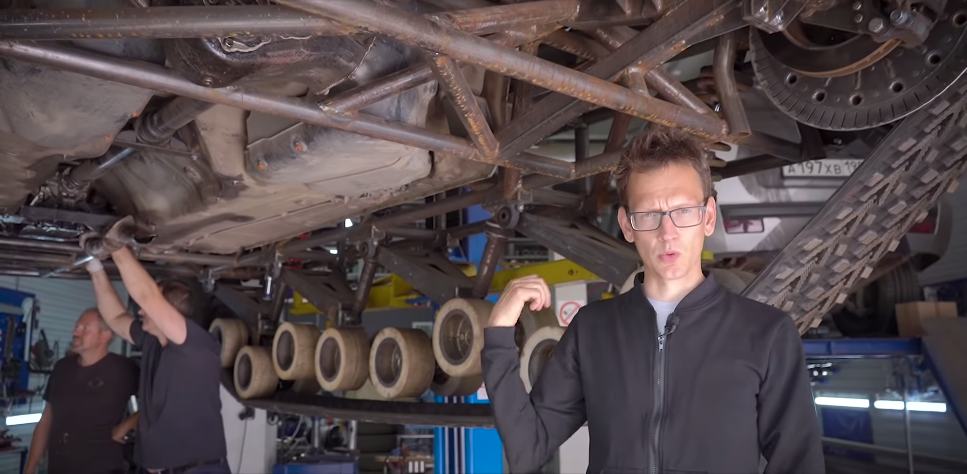 ▼首先,這群Youtuber先是以低價購入舊款賓利Continental GT,為了能嵌上履帶,又送往改裝廠裁切,去除多餘部分。