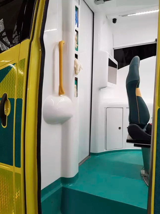 ▼救護車也經過挑高、加寬的設計,讓救護人員可以方便進行移動、搶救等動作。