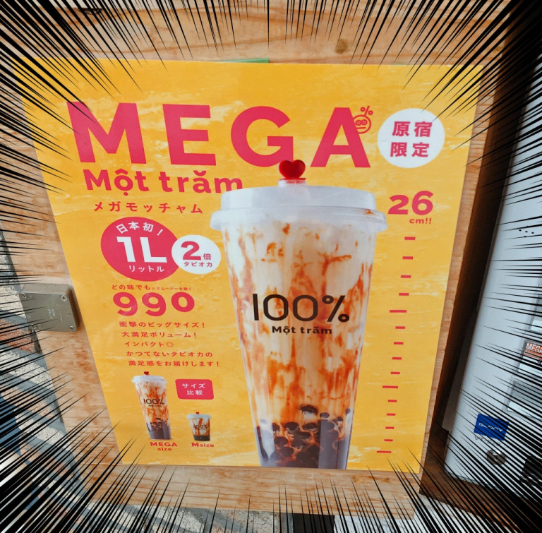 ▼原來這家店推出了一款「原宿限定」的珍珠奶茶,不僅杯子的高度達到了26公分,容量也有整整的一公升,是一般珍奶的兩倍!
