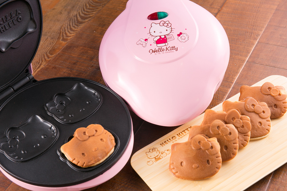 ▼常常在夜市裡看到造型雞蛋糕,現在在家也能輕鬆做出可愛的Kitty雞蛋糕囉!這款「Hello Kitty造型蛋糕機」,甜美的粉色外殼下,開啟後有三格Hello Kitty雞蛋糕模具,只要按照操指示燈,就能烤出香噴噴的雞蛋糕囉!