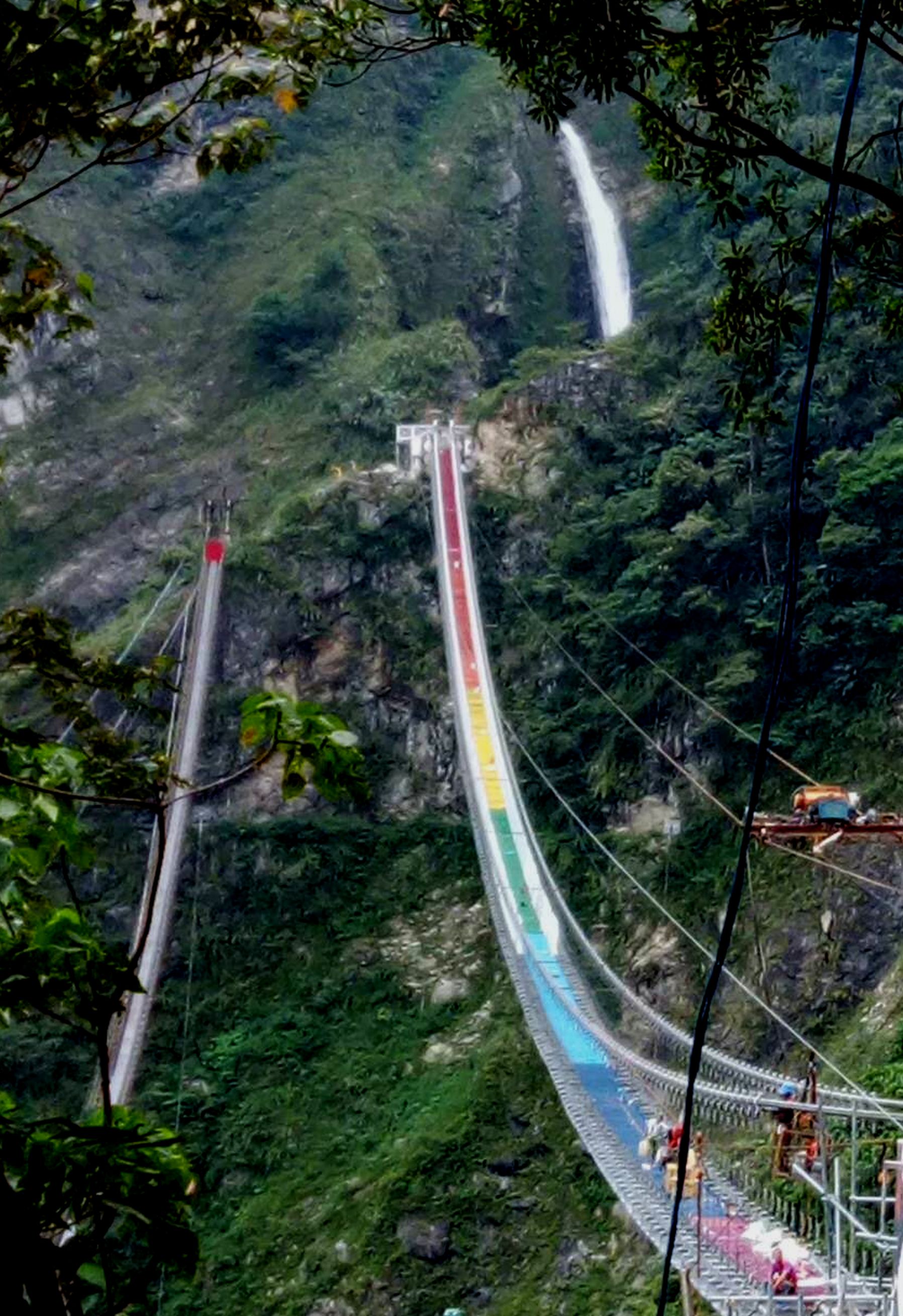 南投四面環山,每座山之間的往來多以橋相連接,故素有「天空之橋故鄉」美譽。近來南投又搭了一座全新的七彩吊橋,全長342公尺、深度逾100公尺,是全台最長且深的吊橋,預計將會於2020年元旦開放。