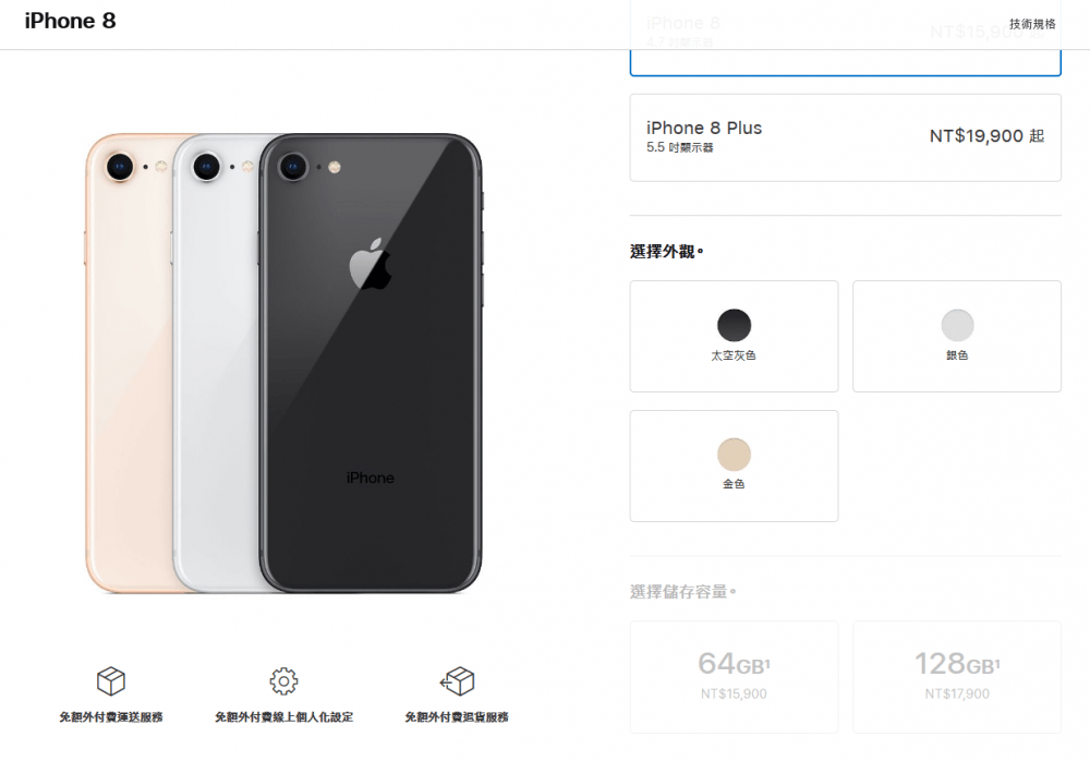iPhone 8 64GB現在只要15900元(便宜5600元),128GB則是17900元,容量卻多了足足一倍!