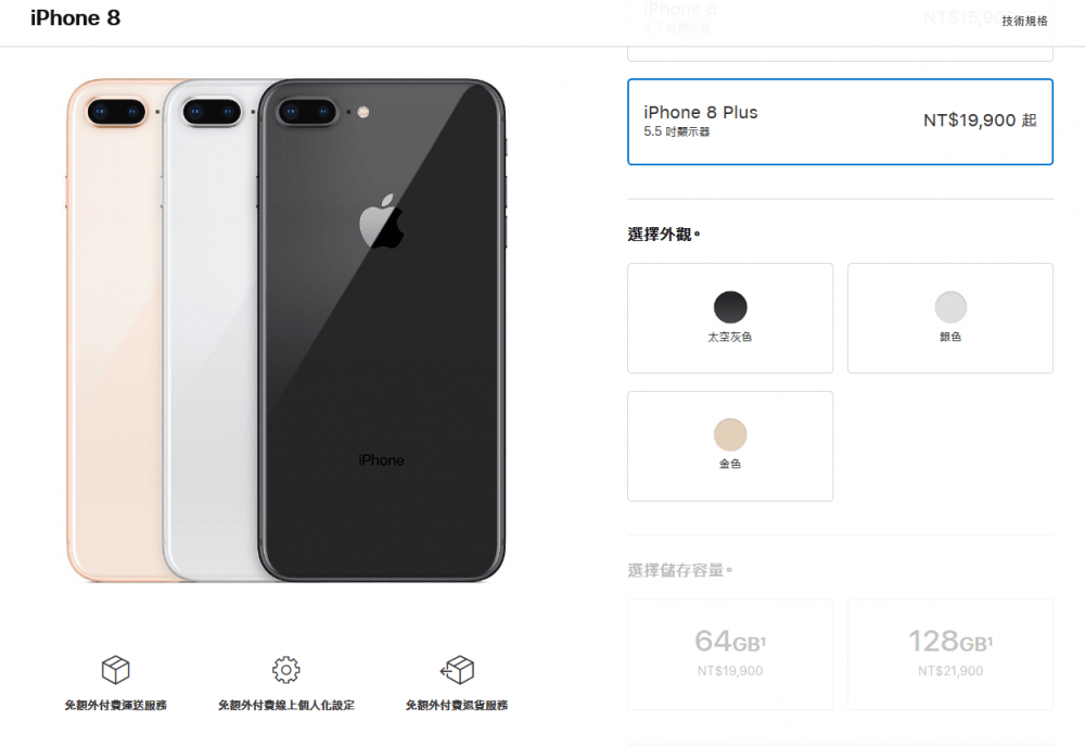 ▼iPhone 8 Plus 64GB為19900元、128GB則是21900元。