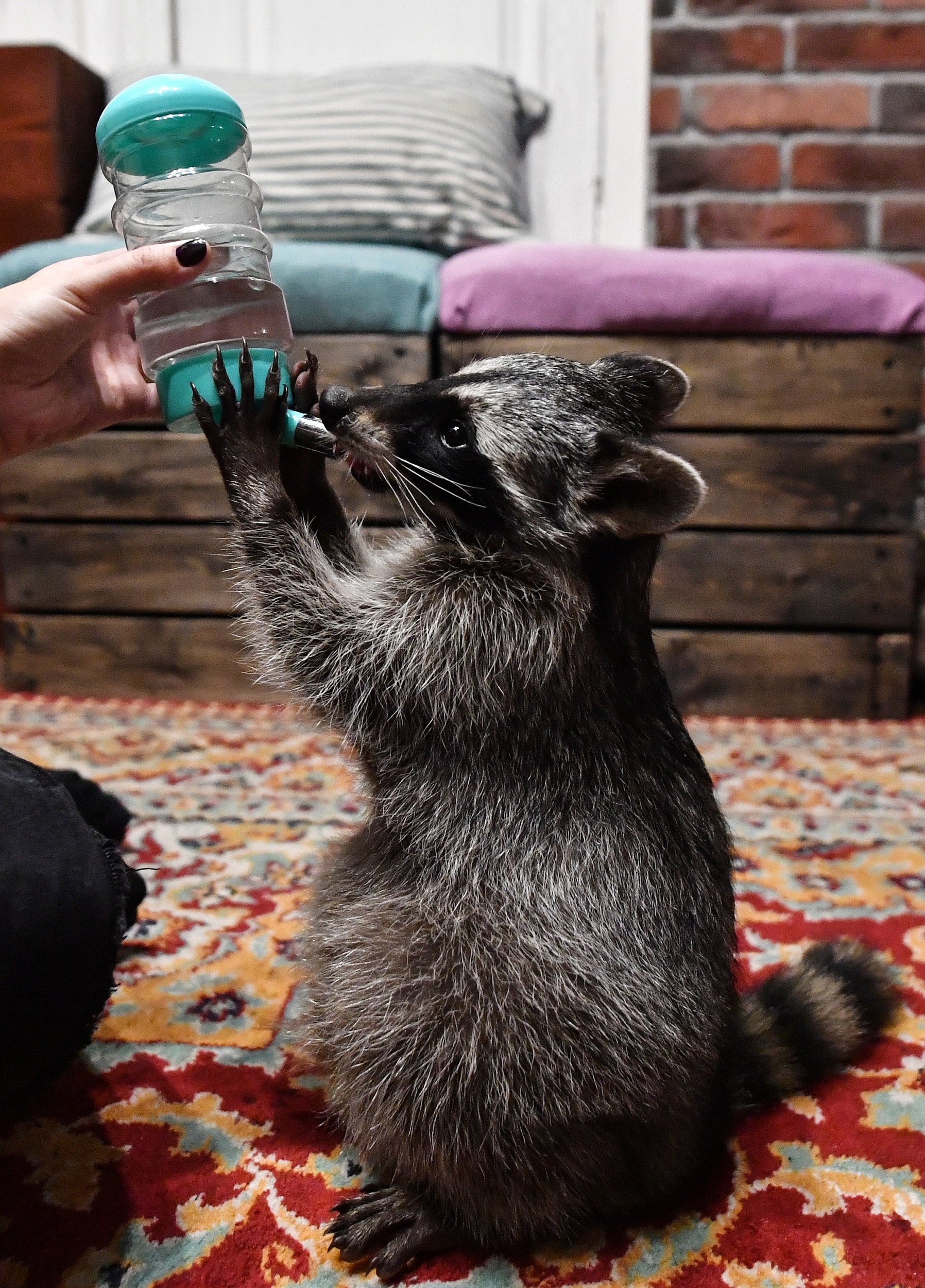 ▼想要與浣熊互動的方式也非常簡單,只要拿起餵水瓶牠們就會自動靠過來了!
