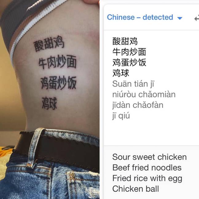 身上就是一本活菜單… 19歲外國妹「太愛中餐」直接用刺青報菜名