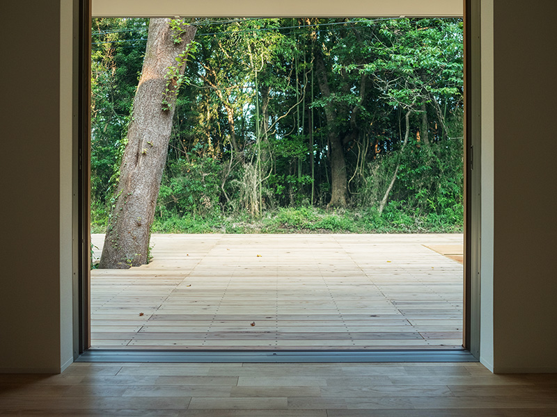 ▼房子內部與屋外並沒有太大的高低落差,而是讓木造的地板與外面連接,營造出內外一體的視覺延伸感。