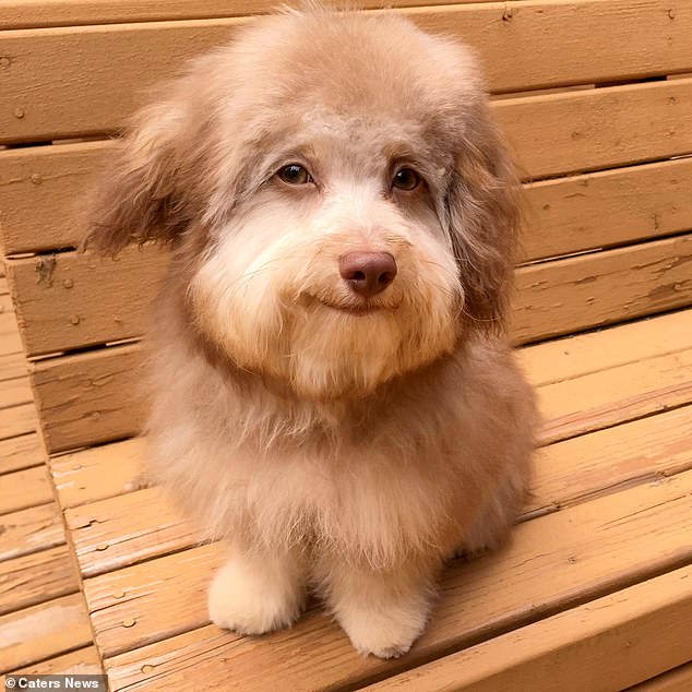▼Nori是一隻澳洲牧羊犬和貴賓犬的混種寶寶,現在與主人Kevin Hurless和Tiffany Ngo一起生活在美國西雅圖。牠有一雙清澈的大眼睛,還有粉紅色的嘴唇,嘴角時刻掛著似有似無的微笑,看起來比別的狗狗更像人。