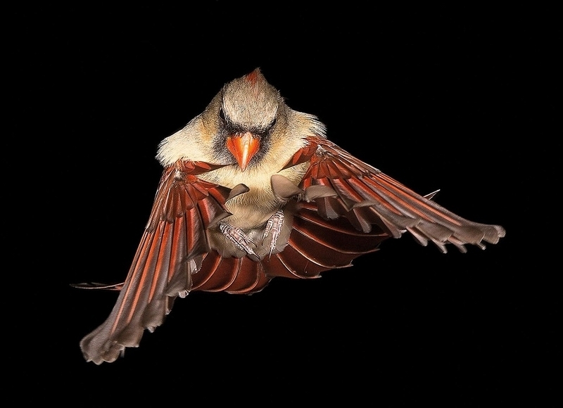 ▼攝影師Gary Cook在俄亥俄州拍攝了這張Cardinal contortio雌鳥照片。