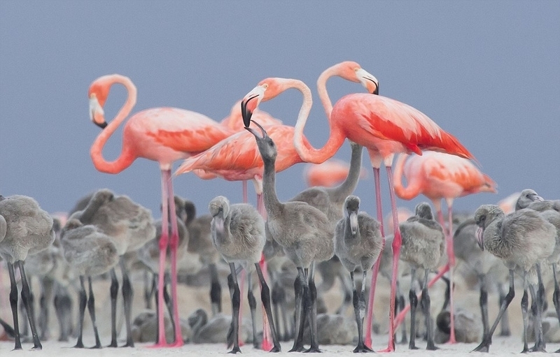 ▼自然攝影師亞歷杭德羅·普列托·羅賈斯(Alejandro Prieto Rojas)憑藉在墨西哥拍攝的粉色火烈鳥餵食雛鳥的照片榮登總冠軍寶座。