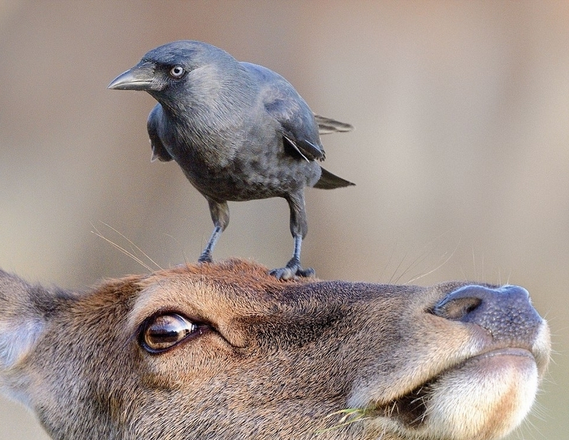 ▼英國攝影師湯姆·海因斯(Tom Hines)在倫敦里士滿公園(Richmond Park)拍攝了這張馬鹿照片。這些鳥是馬、鹿等動物的好夥伴,常以其身上的蜱蟲和其他昆蟲為食。