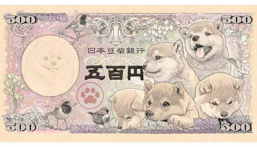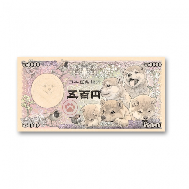 ▼繪師特別設計的500元日幣「豆柴紙鈔」,還是由「日本豆柴銀行」發行的,雖然很像真的紙幣,但當然是不能用啦!另外,大家有發現紙鈔上有幾隻豆柴嗎?其實是6隻喔~