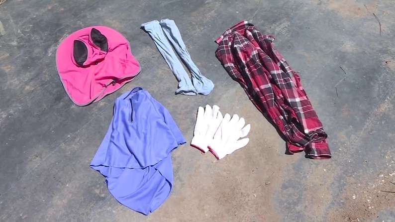 ▼太太為了防曬,每次去室外都要戴上帽子、口罩、套袖,衣服也要穿三四層。這樣不會被曬過頭,卻超級熱。為此丈夫特別發明了一種防曬揹傘,輕輕鬆鬆擋住全身。