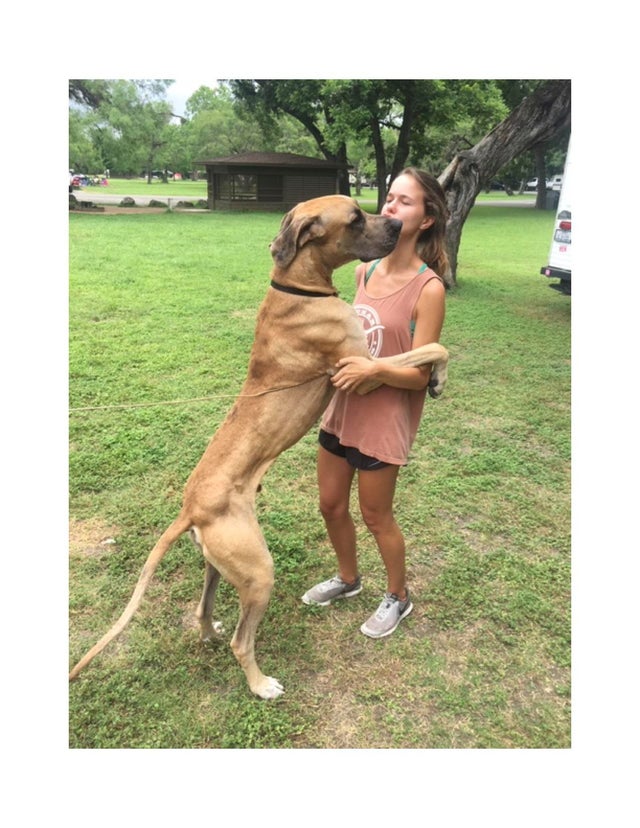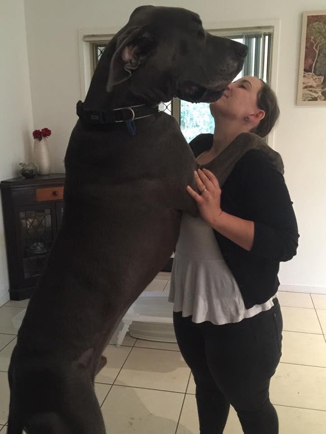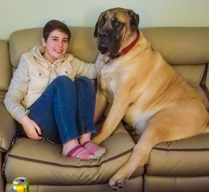 ▼超大型的狗狗和對面的人,形成了一幅奇怪的畫面。