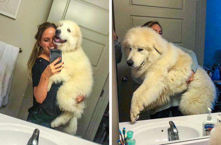 ▼僅僅1年而已,當初藏在懷裡的狗狗已經變成巨人了。