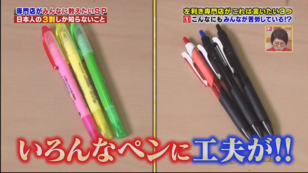 ▼最常用的文具「筆」,也為了方便左撇子使用下了非常多功夫。比如一寫下去馬上就會乾的原子筆,左撇子在寫字的時候,手就不會因為沾到墨跡而髒掉。