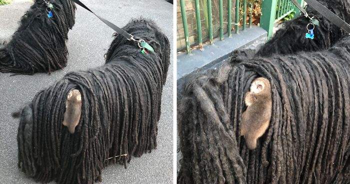 ▼其實動物搭便車這種事之前也發生過,曾經有一隻袋貂趴在可蒙犬背上不下來;