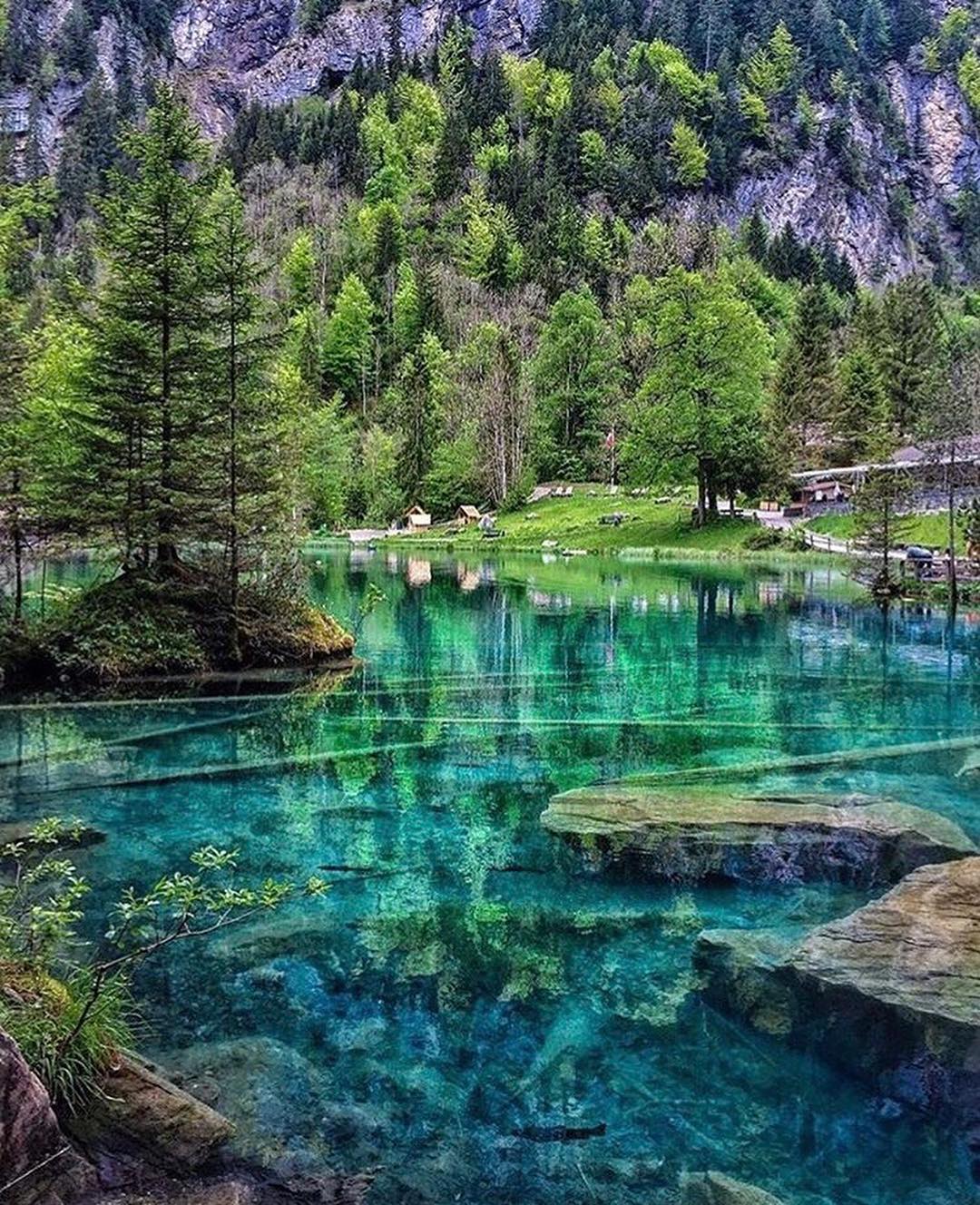 瑞士是內陸國家,國境完全不靠海,境內卻有著許多世界知名的湖泊,而藍湖就是其中一個,這裡絕美的景色絕對會讓所有人第一時間被驚艷得說不出話!據說這裡的湖水美得超不真實,被當地人譽為「寂靜森林中的一顆寶石」,看照片完全就是名副其實!
