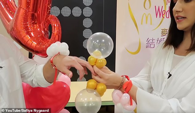▼新人們互相為彼此套上氣球做成的戒指!