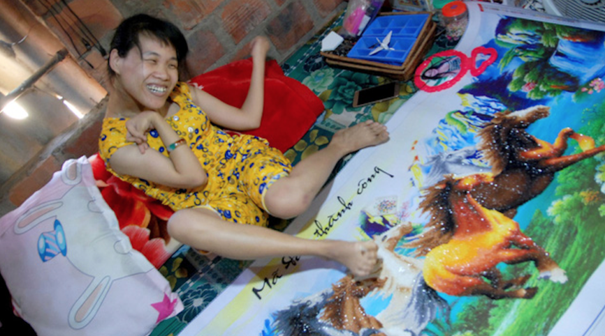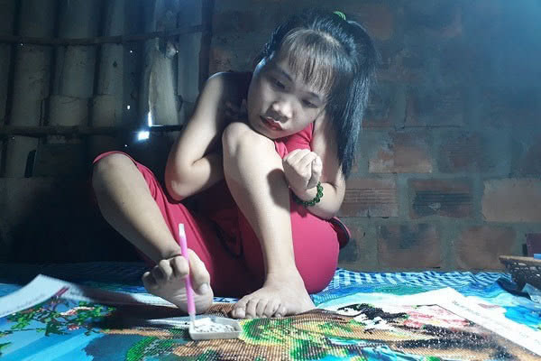 不要別人的捐款! 樂觀越南女「用腳畫畫」養活老母親
