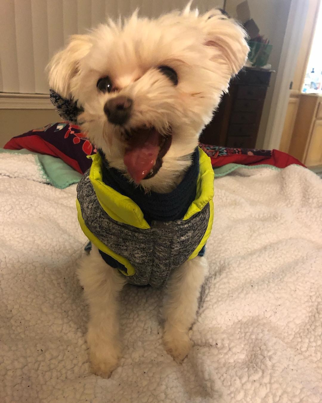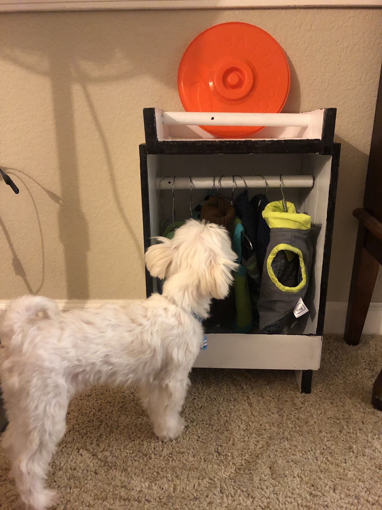 ▼美國有一隻狗狗曾經被前主人送走,哪怕後來又被領養,牠也沒辦法安心,經常發抖。獸醫認為牠非常焦慮。主人發現,只要狗狗穿上衣服就不會發抖了,於是為牠添置了很多衣服。主人的爸爸更把狗狗當成寶貝外孫,親手為牠做了專用的衣櫃。