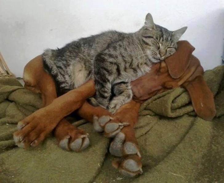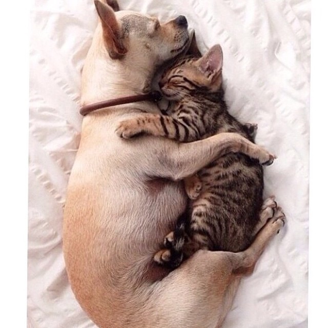 ▼相親相愛的一貓一狗!