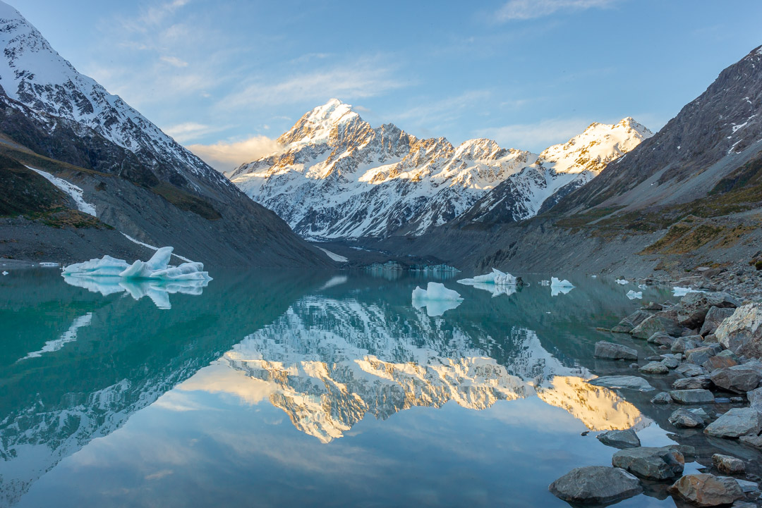 庫克山是紐西蘭南阿爾卑斯山脈的最高峰,高度為3724公尺。常年被雪所覆蓋的庫克山,給人一種壯麗無比的感覺,國家公園內也提供了幾條登山步道,讓大家可以近距離欣賞庫克山的美景!