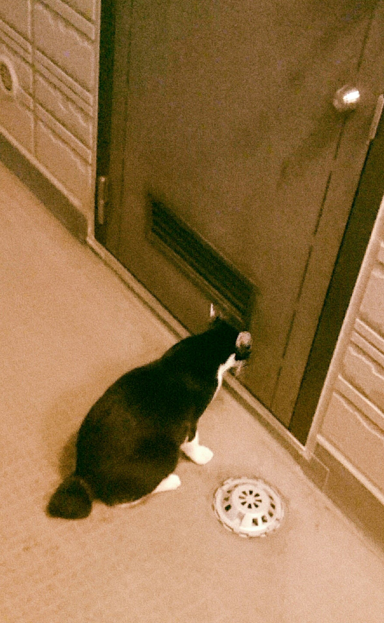 ▼2.大門沒關,浪喵主動找上門。牠好像在問:「我可以進去避一避嗎?」屋主當然不會拒絕啦!