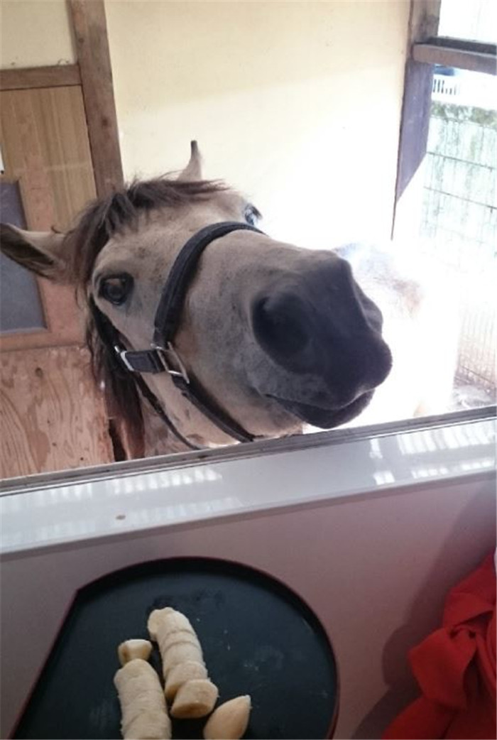 ▼別看它參加儀式時一本正經的嚴肅樣,平日裡也有調皮搞怪的一面,看到食物會兩眼放光,不顧形象的咧嘴憨笑,還有超多好笑動作,令神社職員忍俊不禁,在Twitter分享了它的日常生活照後,立刻吸引了大量粉絲的追隨。